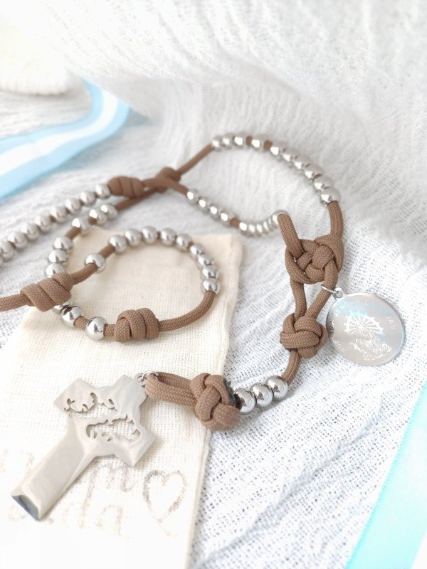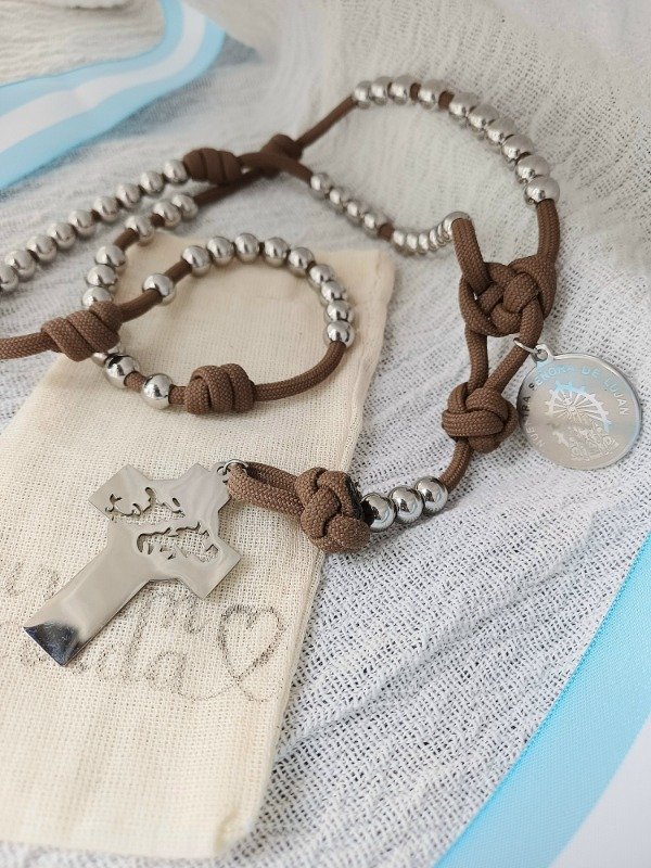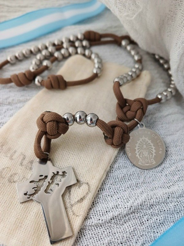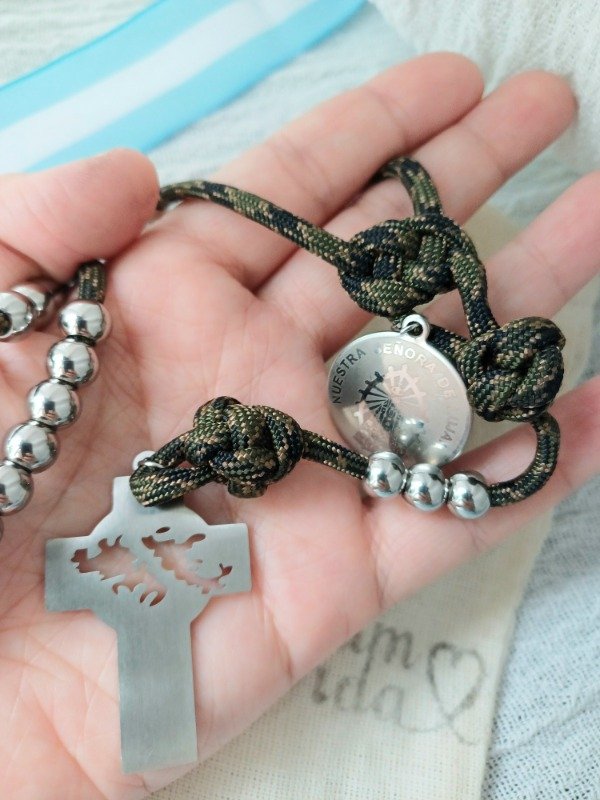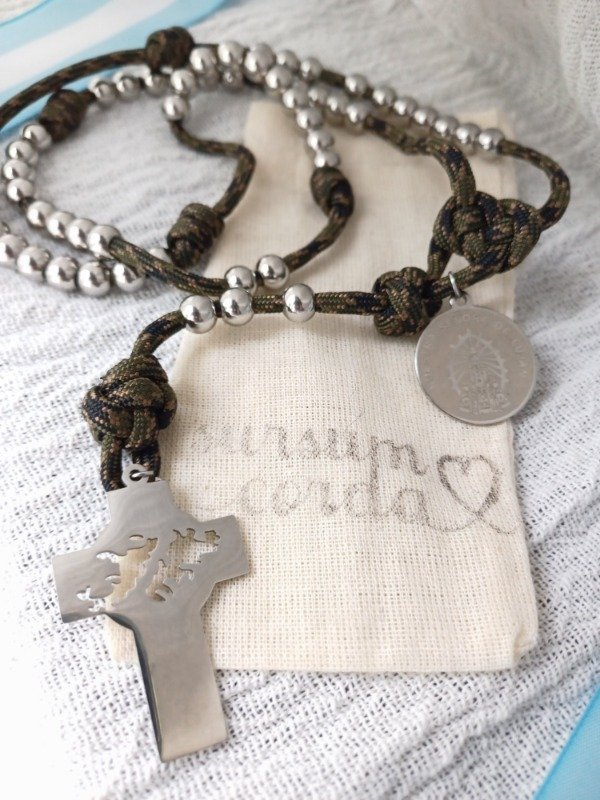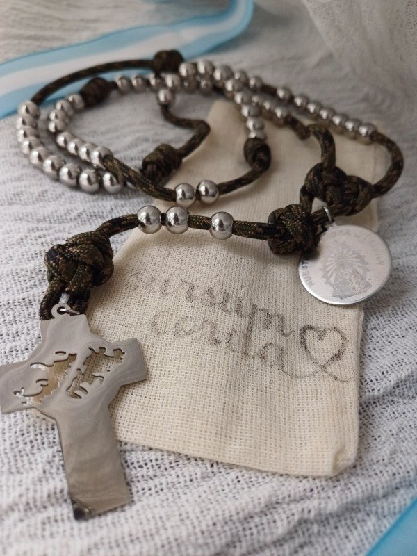 ¿En qué se distingue con el clásico Rosario de Malvinas de Sursum Corda? Este Rosario está hecho con Paracord de un grosor especial de 4mm, y cuerdas de acero quirúrgico macizas.