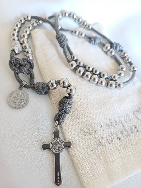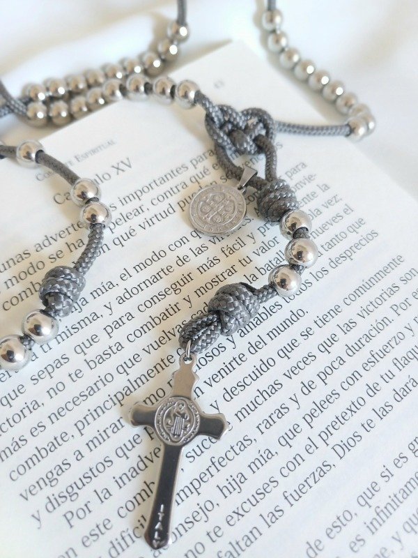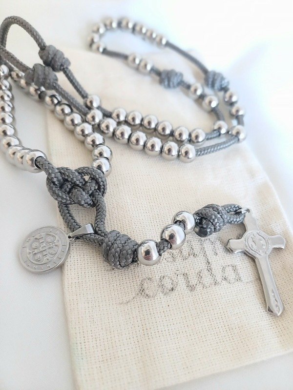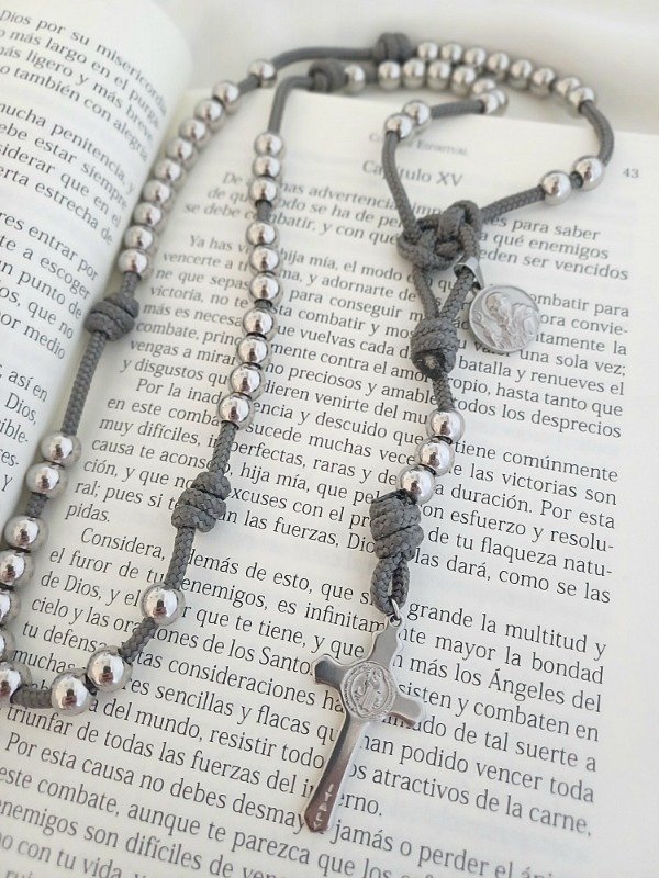Rosario de Paracord (cuerda táctica extra resistente) y acero quirúrgico macizo (no son cuentas huecas), de gran calidad. Un Rosario de gran durabilidad.